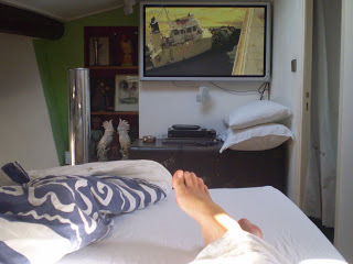I was hungry but too dizzy to go downstairs and across the path to the super marche… luckily the landlord had left some supplies in the fridge, perhaps from the previous visitors so i had some tea, ice cream, almond biscuits and then decided to take it easy the rest of the day and sleep, watch tv, sleep…gaze out the window…sleep. So I took a bath and then lazed the day away, thinking what a luxury it was to do that in Paris, and thank God I was there for a month.